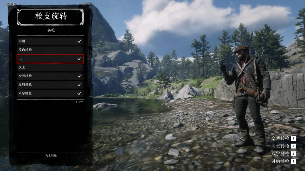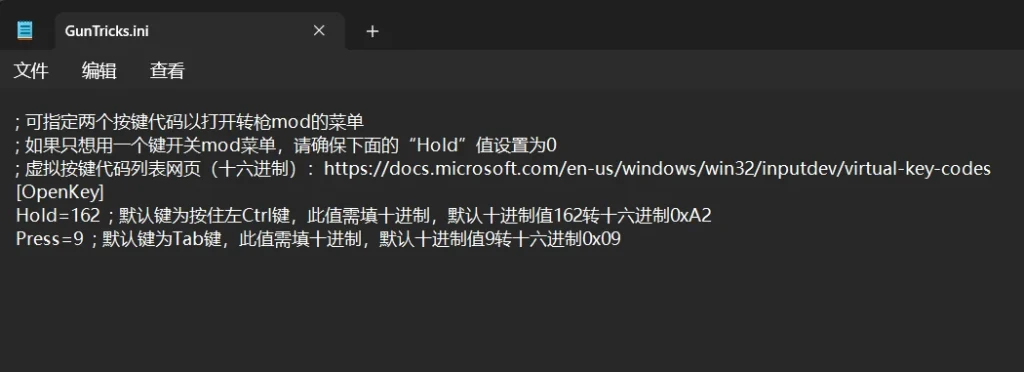汉化翻译了mod菜单和ini配置文件的英文。将线上转枪动作添加到故事模式,双击Tab键(手柄LB键)开始转枪,期间可按1,2,3,4键(非小键盘)换动作,再次按Tab键收枪。长按Ctrl+Tab键打开mod设置菜单来开关模组或更换其他动作。